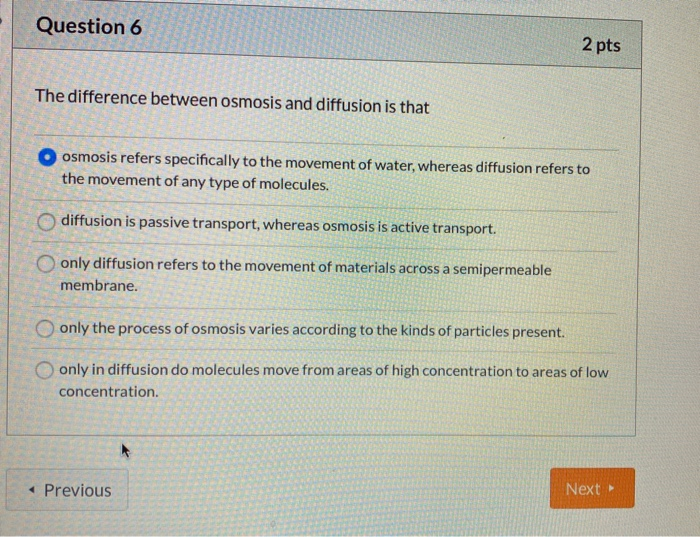 Solved Question 6 2 Pts The Difference Between Osmosis And Chegg Com